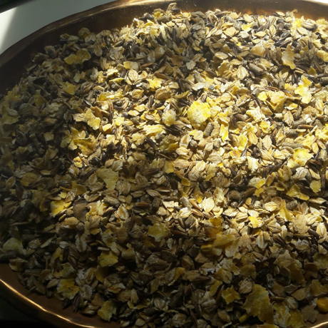 Mangime ricco di sostanze grasse ( omega 3 e omega 6 ) e proteine con l’aggiunta di lievito di birra ( da saccharomyces cerevisiae ).